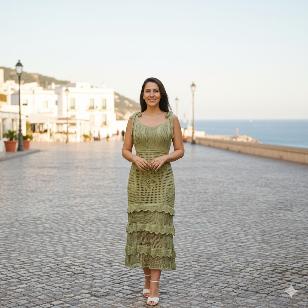 Com amarração nos ombros e forro completo, o Vestido Midi Verde Menta é pensado para oferecer o máximo de conforto em cada detalhe. Sua estrutura confortável garante liberdade de movimento, enquanto o acabamento rendado traz uma dose extra de sofisticação. Ideal para confraternizações, celebrações e dias de verão, esta peça é tão funcional quanto encantadora.